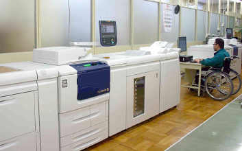 A型事業では印刷業務を行っています。経験豊富な障害のある従業員が印刷業務に取り組んでおり、名刺をはじめ、各種パンフレット、チラシ、帳票類、商品カタログ、冊子等印刷物であればなんでも取り扱っています。