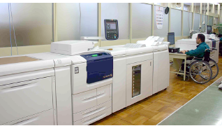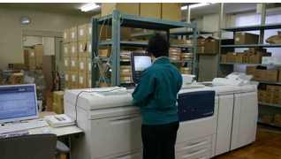Color C75 Ppess なら、毎分75枚(A4)のハイスピードで出力します。たとえば、A4、30ページのカタログ10部を、5分後には丁合済みの状態で印刷完了する、カラー・オンデマンド印刷を可能にしました。印刷に使用されるアート紙やコート紙、OHP用紙などにもプリントできます。A3フチ無し出力も可能ですから、枠なしの全面写真など、自由なデザイン表現に対応できます。1997年に初代目、2004年に二代目、2014年3月に三代目となるオンデマンドシステム(デジタル印刷機)3台(モノクロ2台、カラー1台)を導入しました。